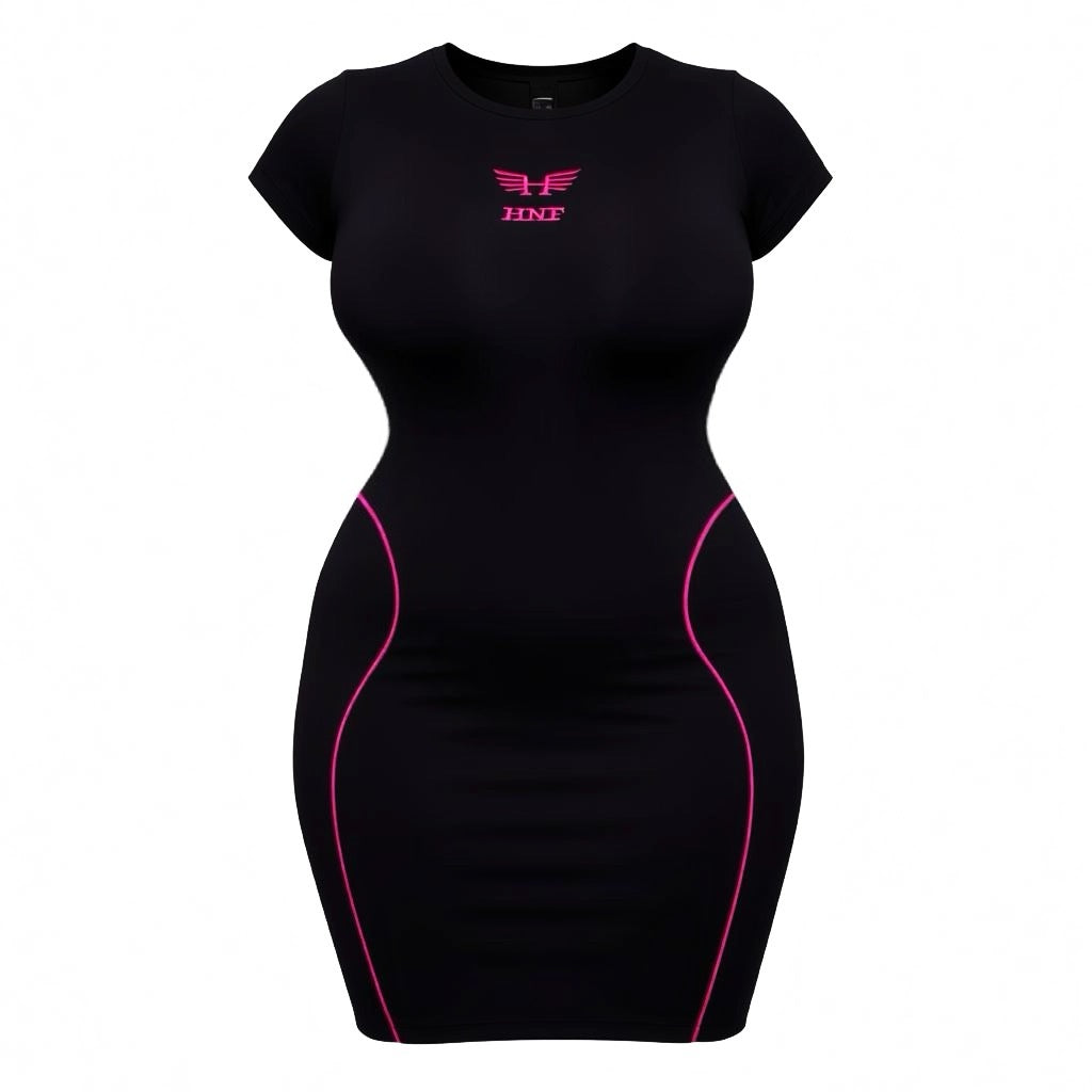 Meet your new favorite statement dress. The HNF Neon stitch bodycon collection that blends with luxury stretch fabric with vibrant neon accents that glow in any setting. Sculpted to perfection, this dress hugs your curves while giving you that effortless nightlife confidence.