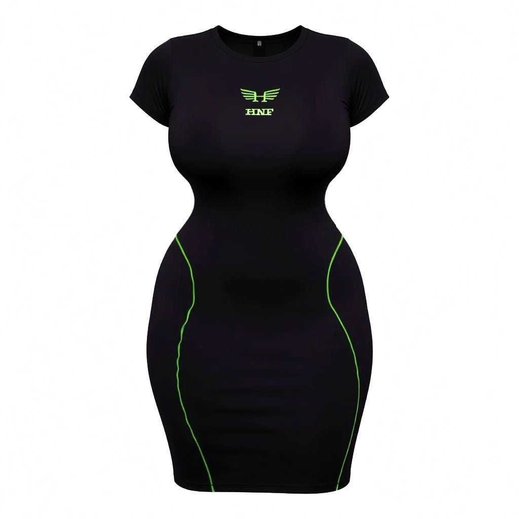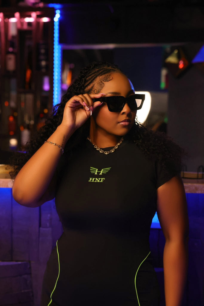 Meet your new favorite statement dress. The HNF Neon stitch bodycon collection that blends with luxury stretch fabric with vibrant neon accents that glow in any setting. Sculpted to perfection, this dress hugs your curves while giving you that effortless nightlife confidence.